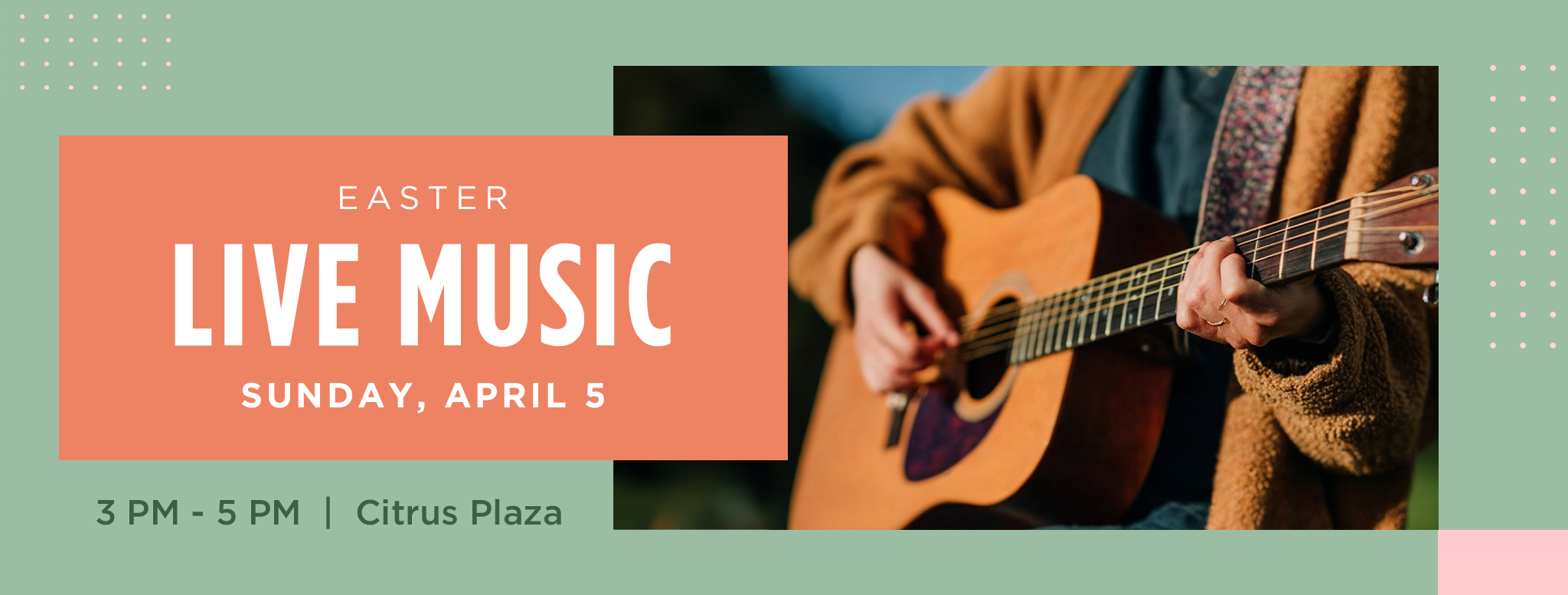 Enjoy a laid-back Easter Sunday afternoon with live music at Citrus Plaza. Enjoy a perfect day for relaxing, strolling, and soaking in the holiday vibes.