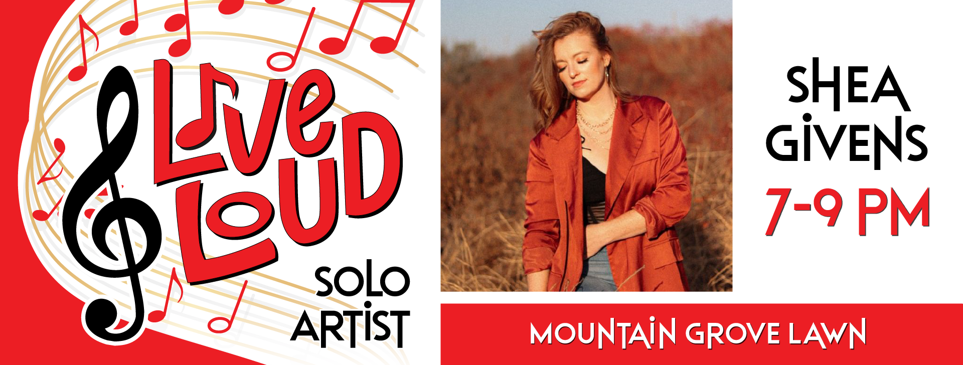We’re excited to welcome Shea Givens on Thursday, May 21, 2026 at Mountain Grove – Lawn, performing live from 7 PM – 9 PM. Bring your friends, grab a bite, and enjoy the music.
