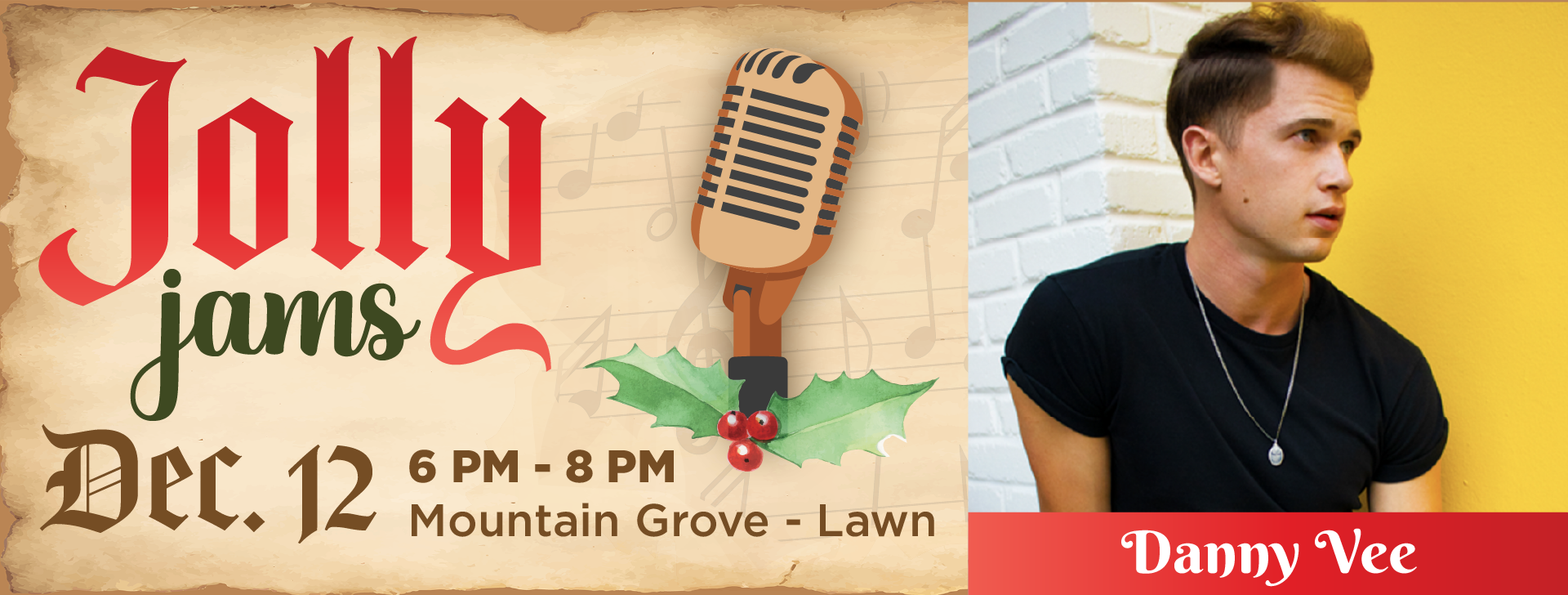 Join us for an evening of smooth vocals and holiday joy as Shea Givens performs live at the Mountain Grove Lawn. Bring a blanket, grab a treat, and unwind under the twinkle lights.