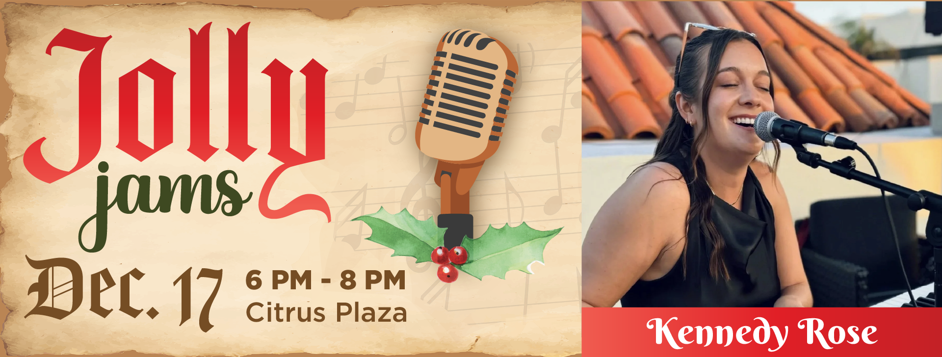 Gather at Citrus Plaza for an enchanting evening with Kennedy Rose, performing festive favorites and soulful originals that capture the magic of the holidays.