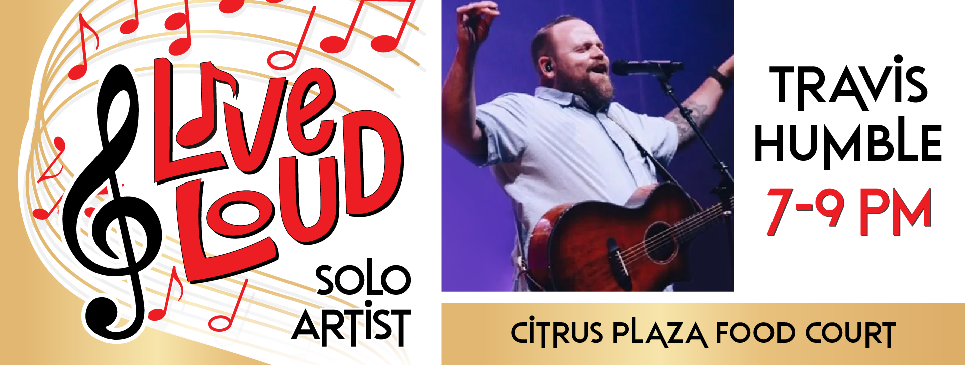 Citrus Plaza Food Court 27510 W Lugonia Ave, Redlands, CA, United StatesDon’t miss the live performance on Friday, June 5, 2026 at Citrus Plaza - Food Court from 7 PM - 9 PM with Travis Humble. Expect great tunes and an easygoing summer atmosphere.
