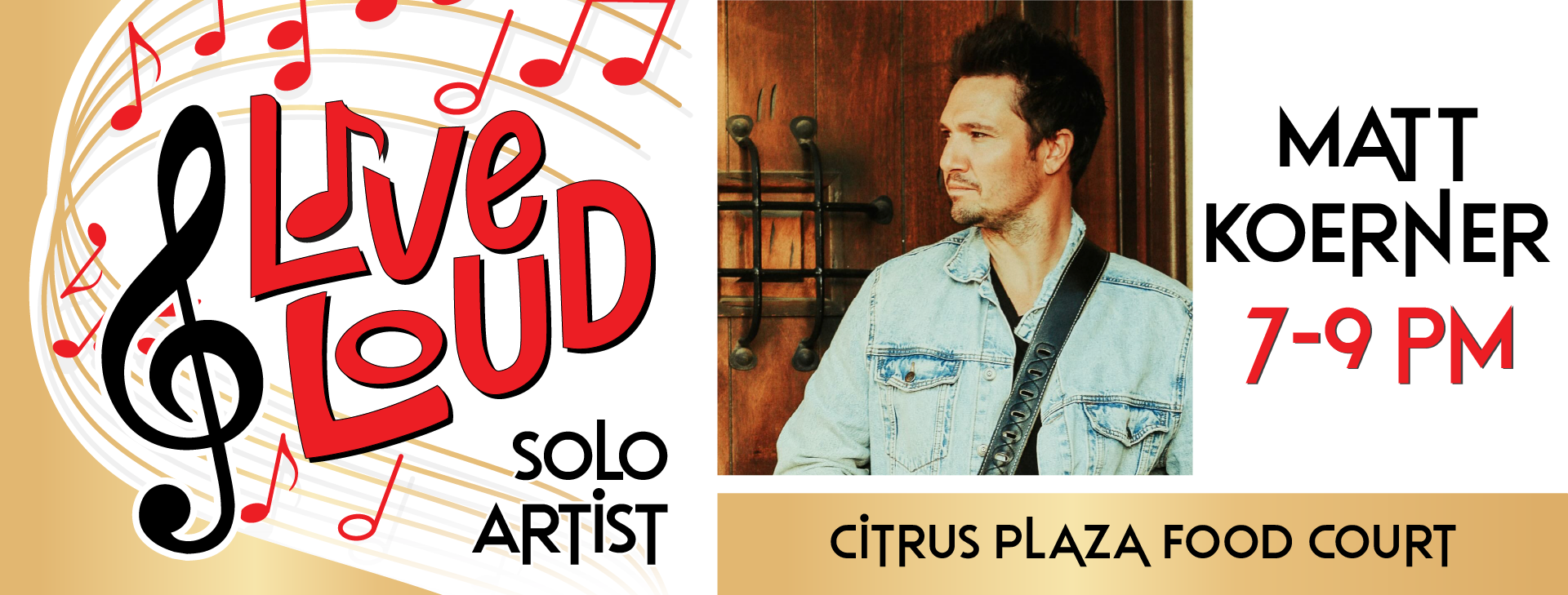 Don’t miss the live performance on Friday, July 17, 2026 at Citrus Plaza - Food Court from 7 PM - 9 PM with Matt Koerner. Expect great tunes and an easygoing summer atmosphere.